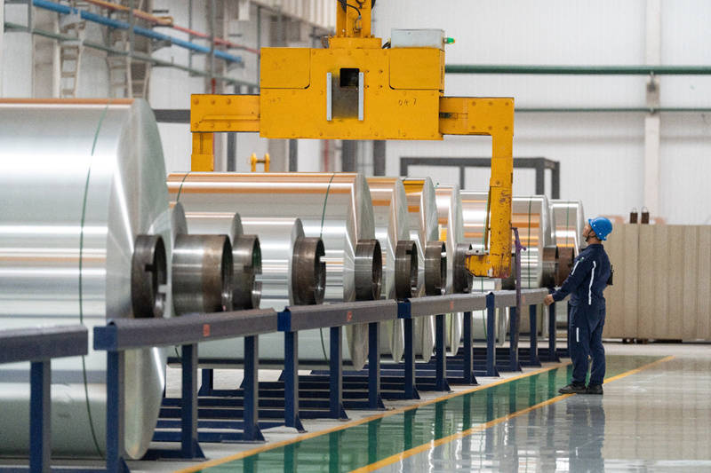 清镇市正在试产阶段的年产3万吨超薄及能源电板铝箔名堂。许发顺摄